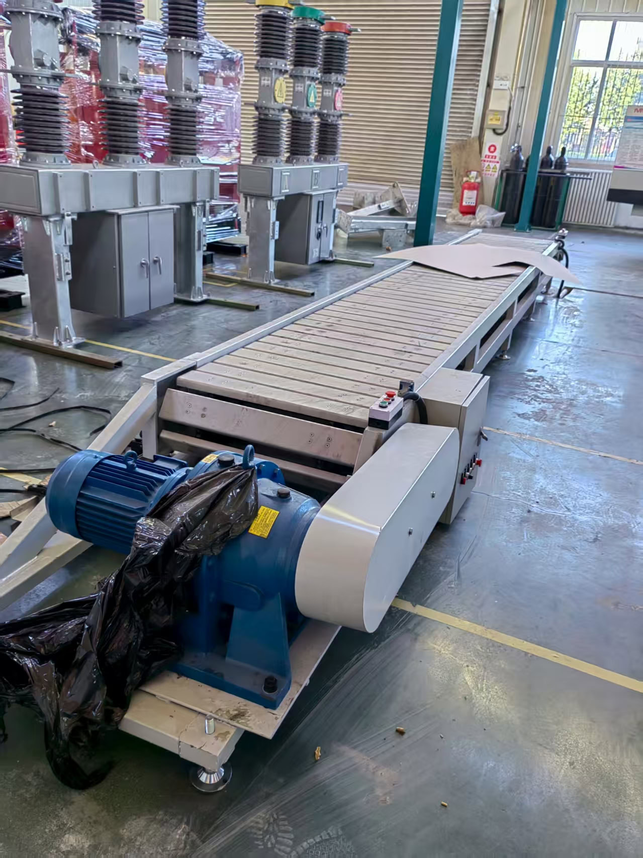 链板输送线可承受较大载荷、长距离输送;线体形式为直线、转弯输送;链板宽度可根据客A户或实际情况设计。链板形式为直线链板、转弯链板。主体结构材质采用碳钢喷塑或镀锌。