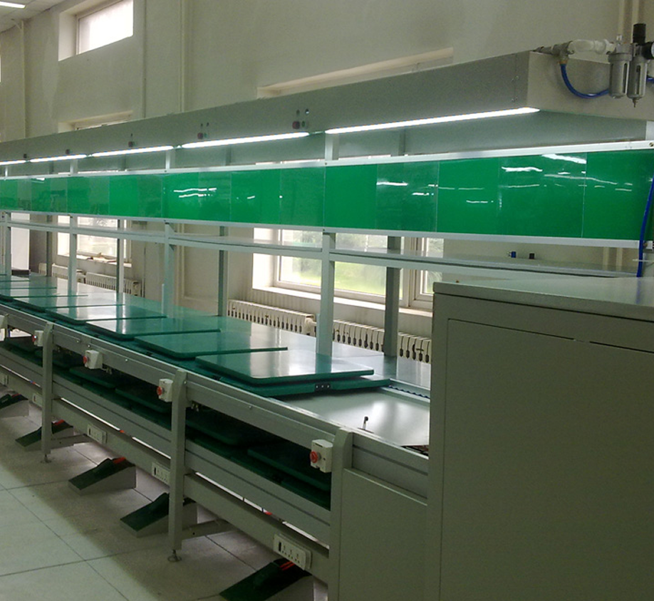 该产品主要用于电子、家电、通讯、计算机、线路板、仪表的生产,组装,检测,包装,输送等。最常用的行业有电脑显示器生产线、电脑主机生产线、笔记本电脑装配线、空调生产线、电视机装配线、微波炉装配线、打印机装配线、传真机装配线、音响功放生产线、发动机装配线等。可在工装板上加装夹具,满足对工件的装配需要。